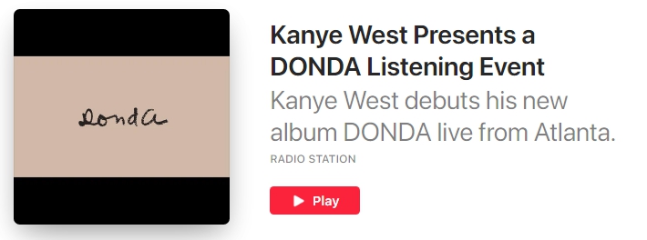 В приложении Apple Music стал доступен стрим, во время которого состоится премьера нового альбома Канье Уэста «DONDA».