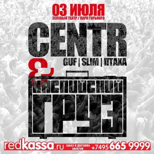 А тут всё становится ясно: Гуф не посетит это мероприятие потому, что он будет выступать в «Зелёном Театре» вместе со Слимом и Птахой. Совместный концерт CENTR и Каспийского Груза назначен на 3 июля.