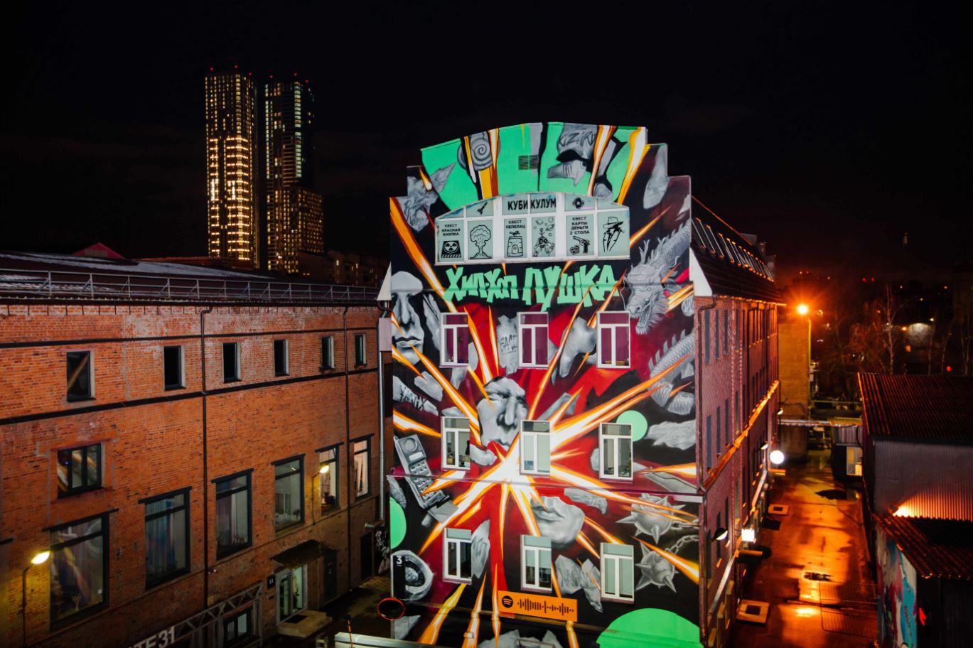 В честь выхода нового альбома FACE Spotify вместе с командой художников разместил арт-объект в пространстве дизайн-завода «Флакон». Это яркий мурал с отсылками к творчеству исполнителя и других талантливых представителей жанра.