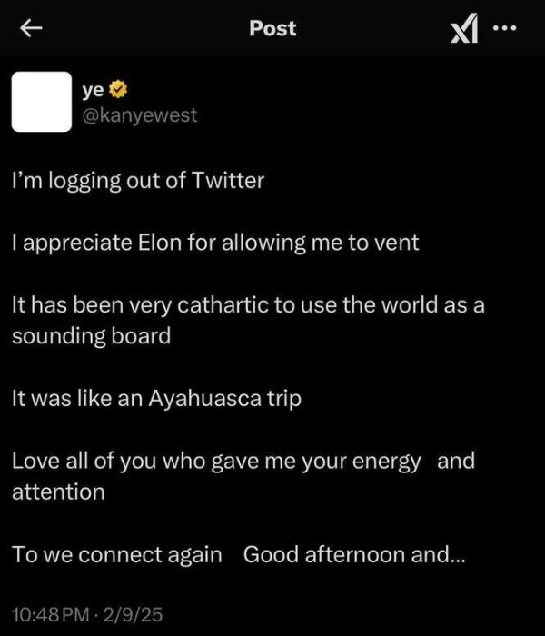 В последние дни Уэст публиковал в X (бывшем твиттере) противоречивые и антисемитские сообщения, включая восхваление Адольфа Гитлера, заявление о том, что он отождествляет себя с нацистом, представлял дизайн футболки Yeezy со свастикой, осуждал движения #MeToo и снова писал о рабстве.