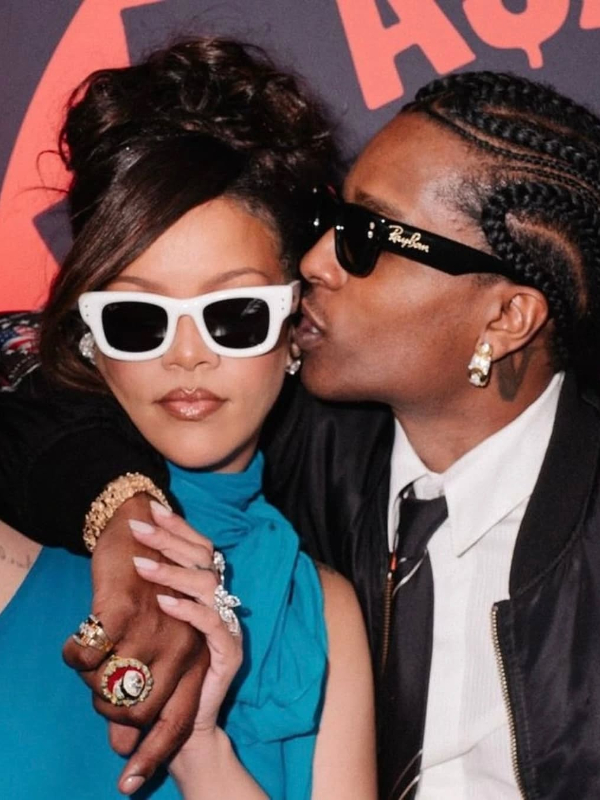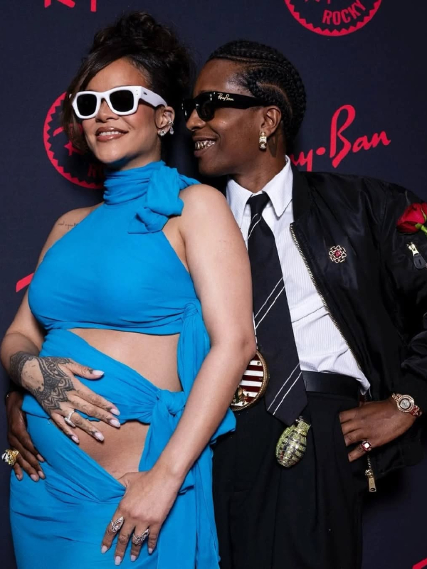 Раким и Рианна позировали фотографам, примерив разные версии Wayfarer Puffer — переосмысленной рэпером культовой классики. Белая модель, которая была на Рири, — комплимент к ее небесно-голубому платью. Скоро она снова станет мамой.