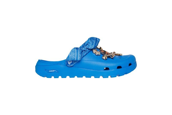 Кроме того, изделие украшено съемными тематическими декоративными элементами в стиле Снупа. Среди них — лицо рэпера, значки с долларами, короны, микрофоны и прочее. На пятке — атласные банданы или детали в виде цепей золотого цвета, гармонирующие с общей стилистикой обуви.