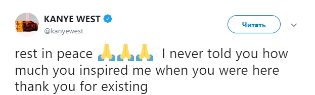 Покойся с миром. Я никогда не говорил тебе, как сильно ты вдохновлял пока был здесь. Спасибо за твое существование