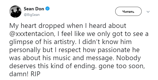Также свои соболезнования высказали такие артисты, как The Game, Meek Mill, Lil Pump, Big Boi, Travis Barker, 6ix9ine, Just Blaze и многие-многие другие.