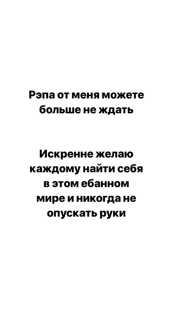 Сегодня в инстаграм-сторис Thrill Pill заявил о том, что планирует завязать с рэпом. «Рэпа от меня можете больше не ждать, – заявил фрешмен. – Искренне желаю каждому найти себя в этом е***м мире и никогда не опускать руки».