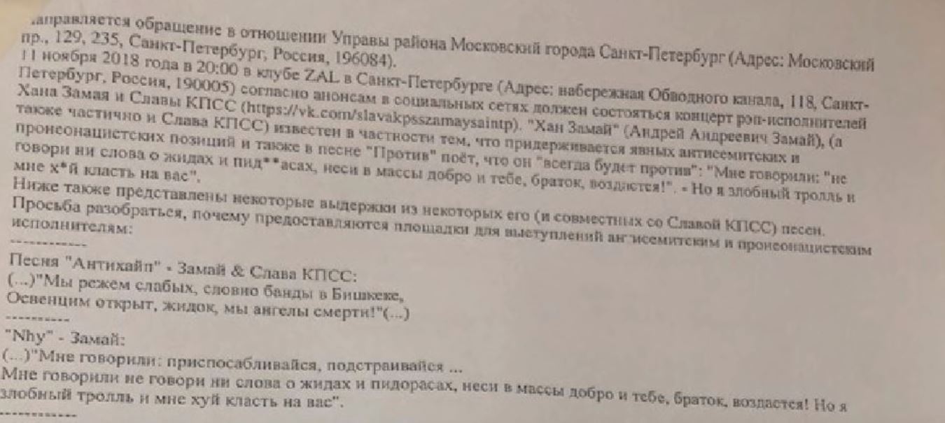 Из интересного: Гнойный рассказал, что его с Замаем питерский и московский концерты под угрозой и показал соответствующий документ из прокуратуры. Обратите внимание, в документе — цитата Бабангиды.