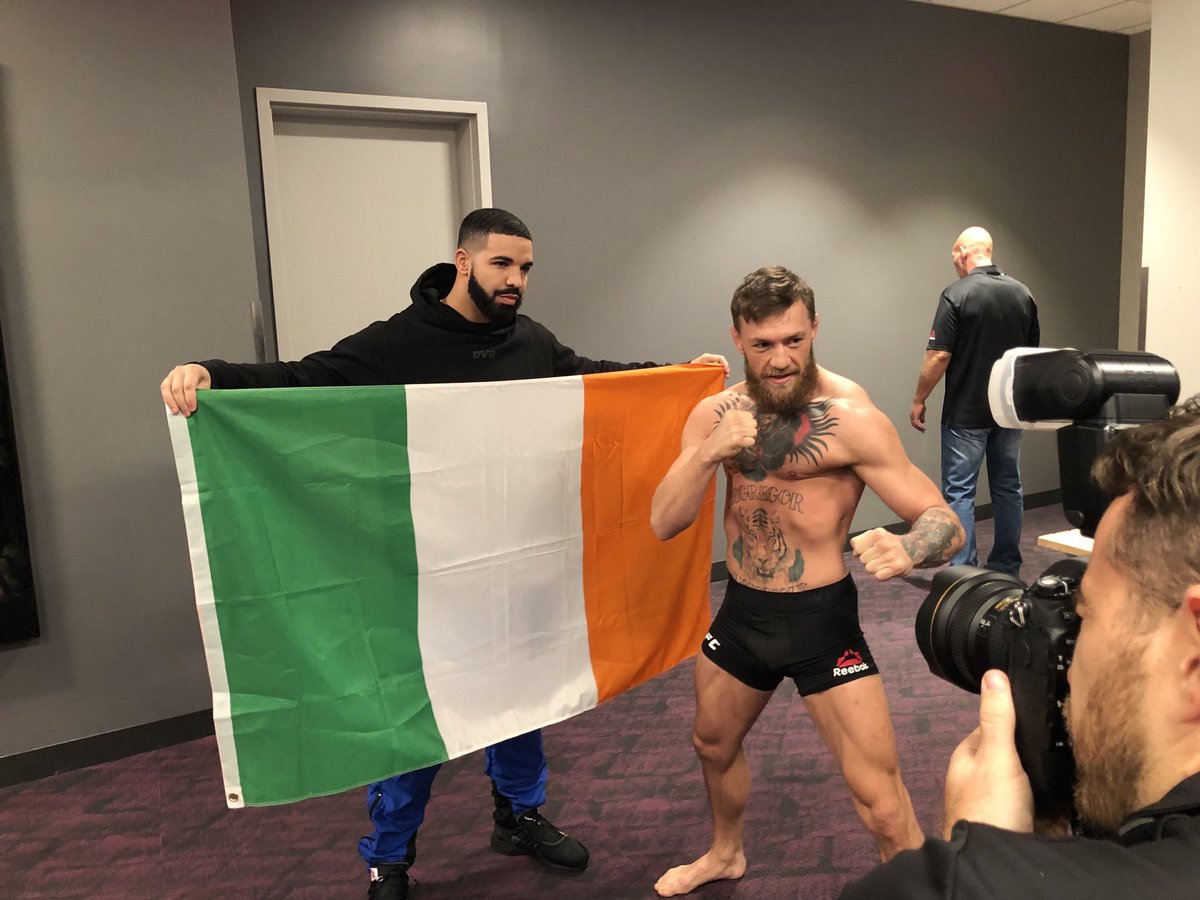 Что примечательно, во время церемонии Макгреора поддержал его давний приятель Дрейк, который был облачен в ирландский флаг. Он приобнял Конора после того, как тот сдал вес, тем самым продемонстрировав, за кого будет болеть в грядущем поединке.