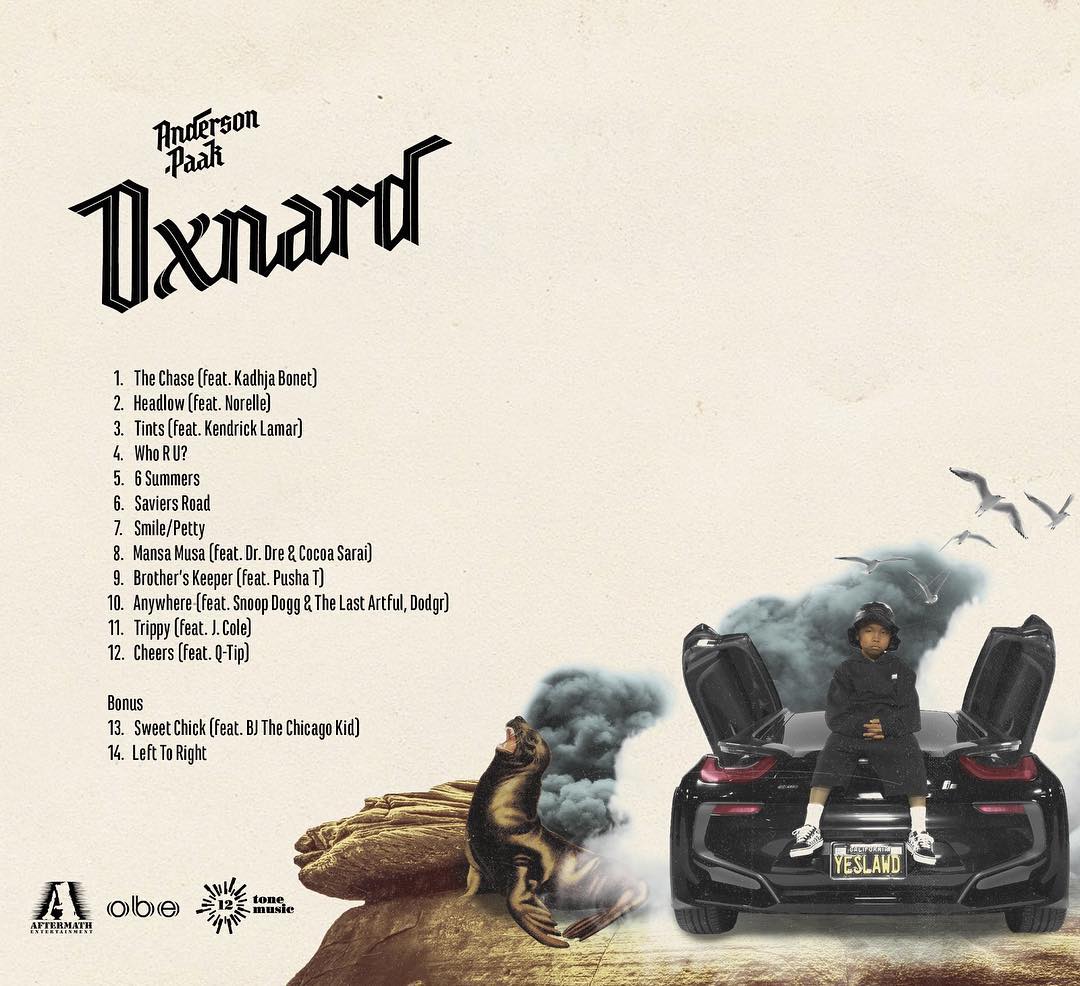 Также Андерсон опубликовал треклист «Oxnard», где помимо Кендрика появятся Pusha T, Dr. Dre, Snoop Dogg, J. Cole, A Tribe Called Quest и BJ The Chicago Kid.