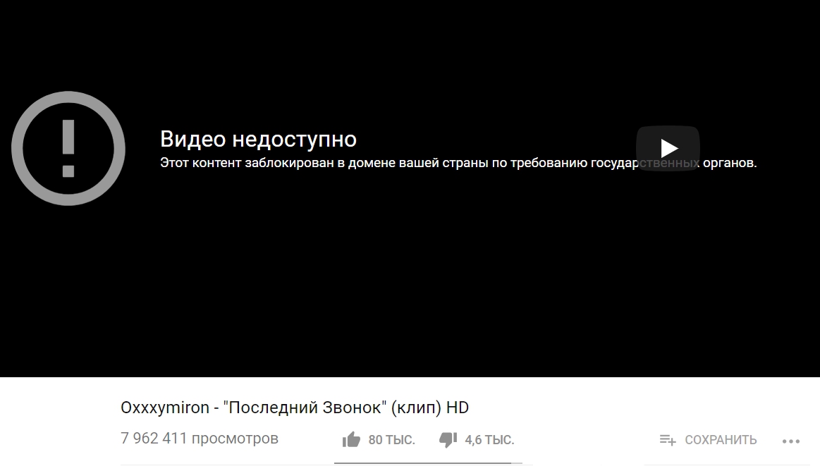 На данный момент во ВКонтакте все еще можно найти перезаливы, однако на YouTube оказались заблокированы три фанатских ролика — первый, второй, третий. Если попытаться открыть их с территории России, то сервис выдаст предупреждение: «Контент заблокирован в домене вашей страны по требованию государственных органов».