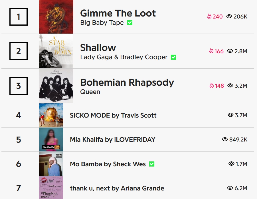 На этом рекорды Тейпа не заканчиваются. Его трек «Gimme The Loot», в котором сэмплируется Бигги и звучат уже ставшие мемом строки «Я взял твою бу и я её е*у», продолжает занимать первую строчку по популярности на сайте Genius среди всех треков.