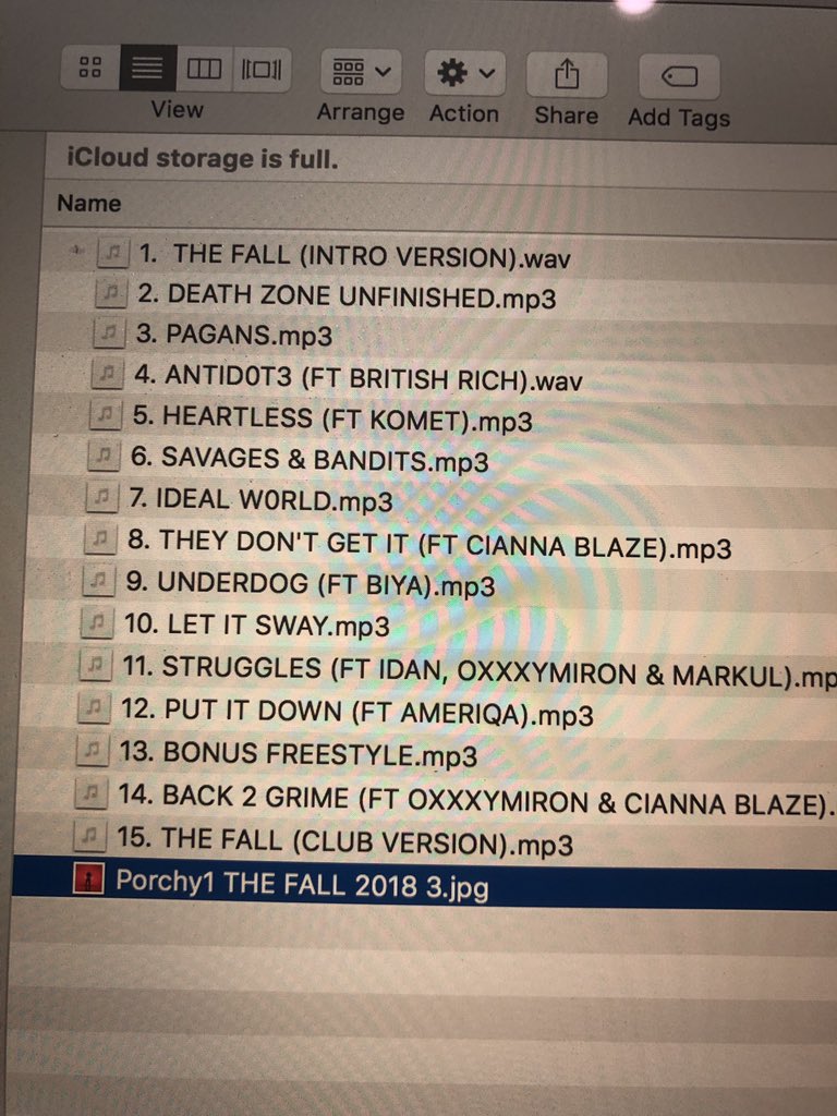 Сегодня Porchy опубликовал треклист своего нового проекта, сопроводив фотографию сообщением: «Хьюстон, у нас готов альбом… почти». Его релиз состоится в декабре этого года, а пока можно изучить список песен.
