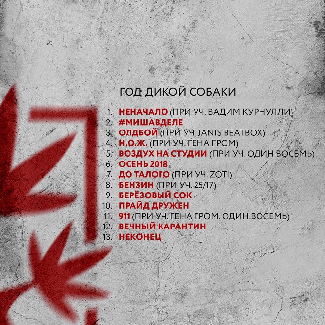 Вчера в паблике Красного Дерева появился треклист альбома «Год Дикой Собаки», релиз которого запланирован на зиму 2019 года (более точной даты пока нет).