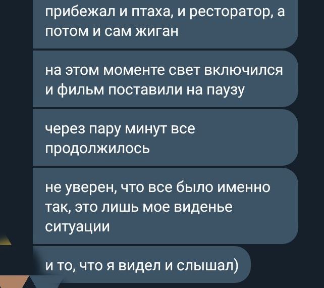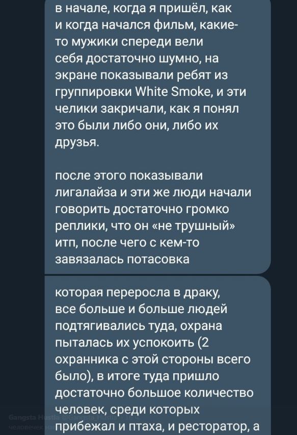 Ещё во время показа фильма в сети начали всплывать рассказы о драке в кинотеатре. Например: