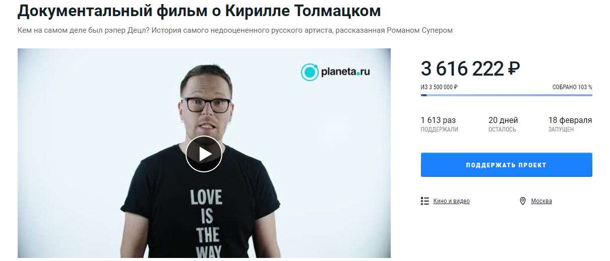 Журналист за 20 дней собрал 3,5 миллиона рублей на фильм о Децле