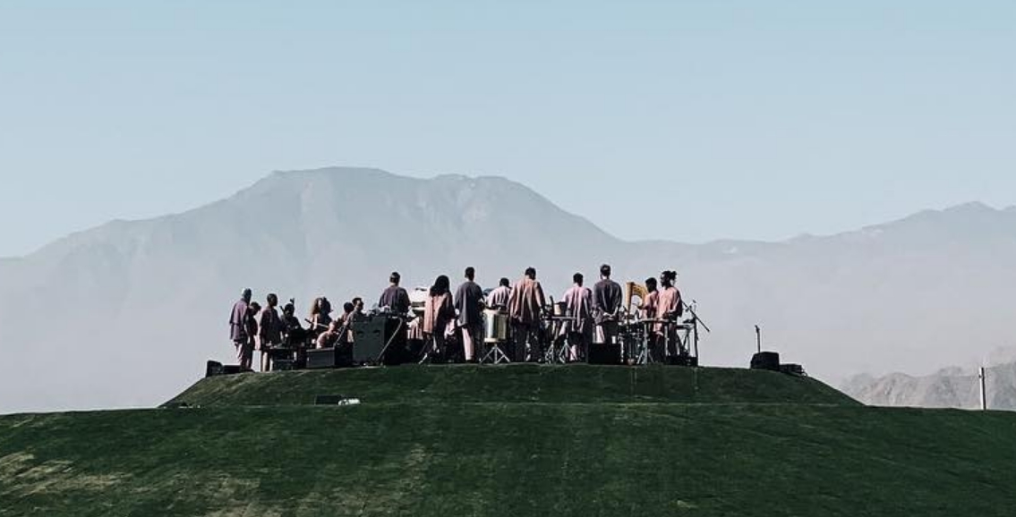 Вчера Канье Уэст устроил необычный концерт на фестивале Coachella в виде своей воскресной службы. Мероприятие проходило на специально отведенных для этого холмах и совпало с католической Пасхой.
