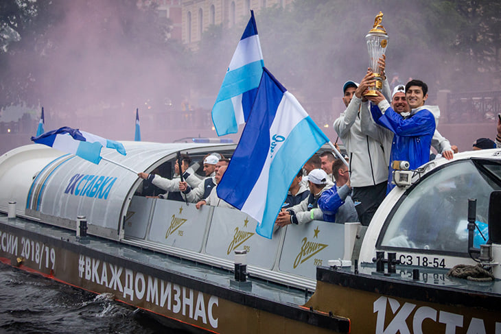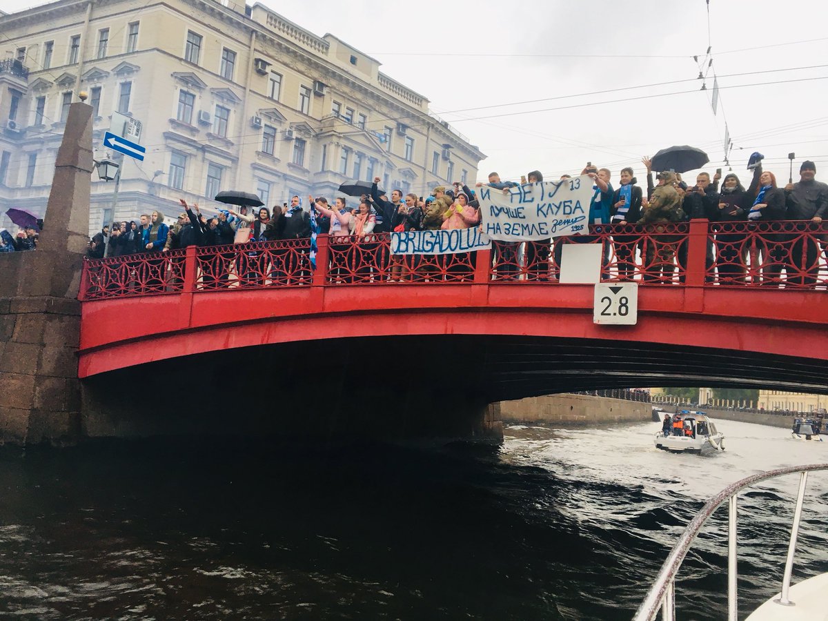 Чемпионство отмечали бурно, с размахом — например, катались по питерским каналам в сопровождении фанатов: