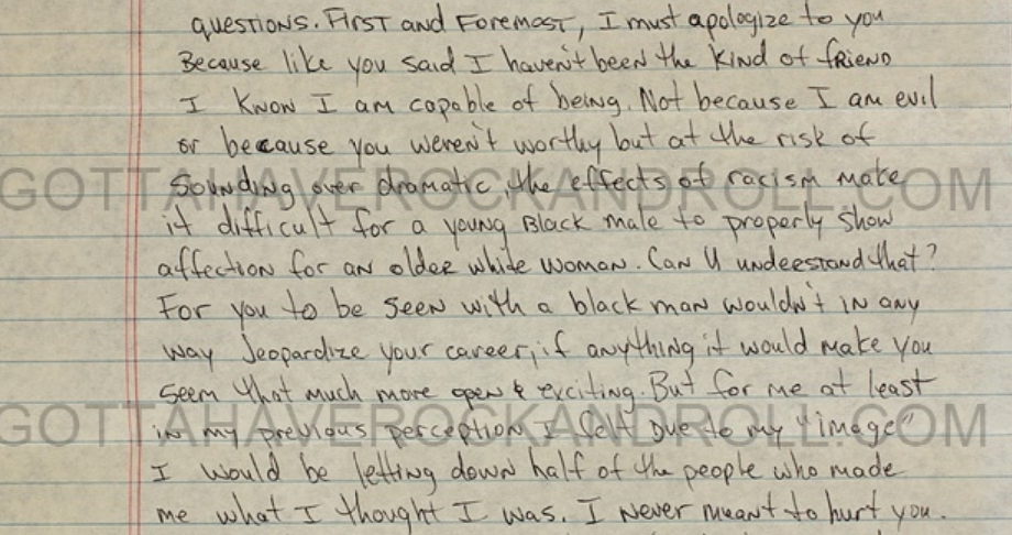 В тексте письма Тупак приносит извинения Мадонне за то, что им пришлось расстаться. Одной из причин прекращения отношений он называет расизм и его последствия: