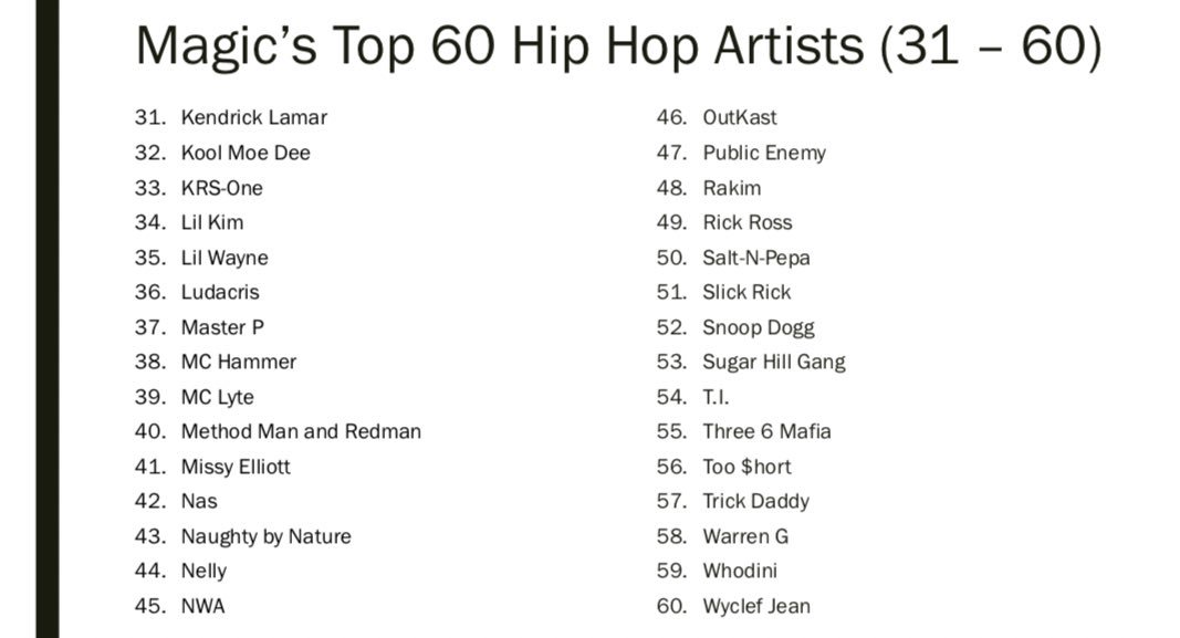 «Подождите, то есть Мэджик начал свой список как рейтинг, а потом просто перечислил всех рэперов по алфавиту?»