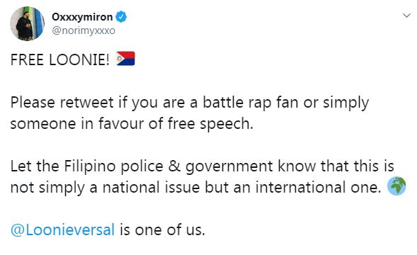 Филиппинец Loonie, с которым будет баттлить Окисимрон, попал в тюрьму. Мирон требует его освободить