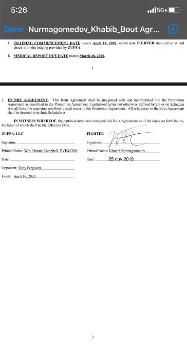 Уайт отметил, что контракты между спортсменами еще не подписаны, но обе стороны заинтересованы в проведении боя — и спустя несколько часов стало известно, что Хабиб подтвердил своё участие. Судя по всему, за Тони тоже не заржавеет.