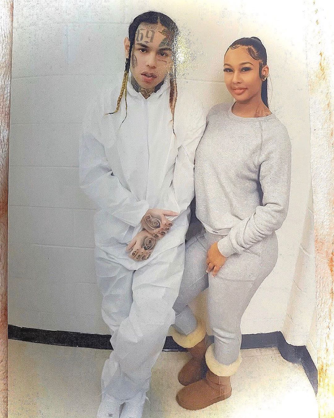 Джейд, девушка 6ix9ine, поделилась в социальных сетях новой фотографией с рэпером, который продолжает отбывать оставшийся срок. На снимке можно увидеть фирменные косички Текаши, однако на самих волосах почти не осталось краски.