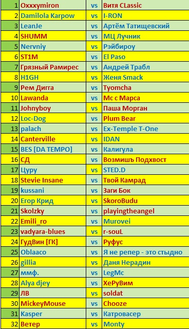 17 Независимый баттл hip-hop.ru подходит к особо интересной стадии. Стало известно, кто прошёл в 5 раунд баттла, а также пары, которые в нём сразятся. Ещё произошло объединение таблиц, так что теперь следить за всем этим стало проще.