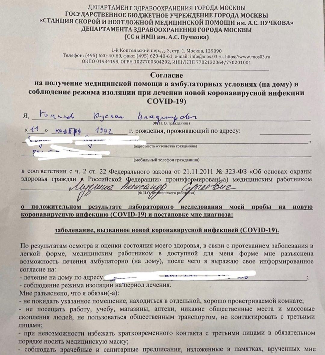 Ощущение, будто тебя неделю, наверное, мучили. Такое состояние, типа ничего не хочется делать, хочется спать, тяжело понимать, что происходит. Если протекают осложнения — тогда в больницу. Сейчас больницы переполнены, даже в частных клиниках все занято. Я бы в обычной городской больнице бы не лежал, но даже в частной сейчас не особо много мест. Поэтому если вирус не в тяжелой форме протекает, то тебя изолируют дома, ты проходишь курс лечения дома. Я нахожусь под наблюдением врачей, я 24/7 на связи с врачом.