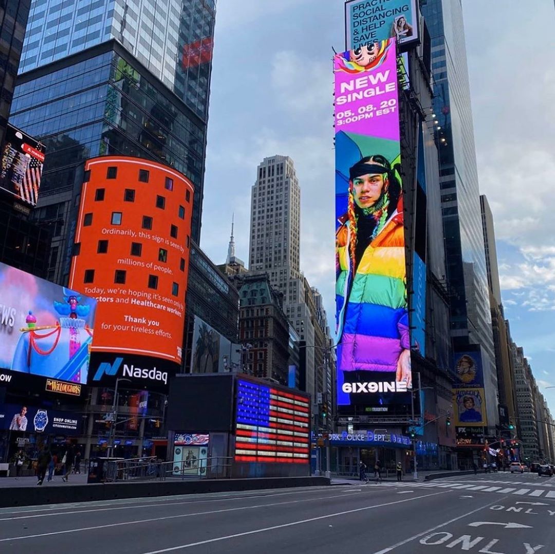 «Король вернулся»: 6ix9ine повесил огромный билборд на Таймс-сквер и анонсировал трек