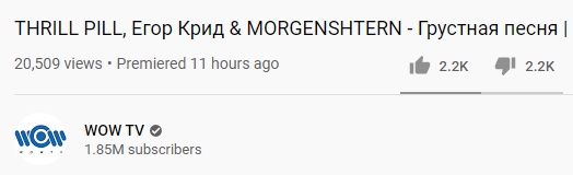 Thrill Pill неожиданно удалил со своего YouTube-канала клип «Грустная песня» — один из главных хитов прошлого года, записанный совместно с Егором Кридом и Моргенштерном. На момент удаления у видео было больше 50 миллионов просмотров.