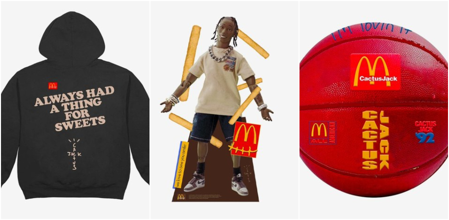 Также в коллекцию McDonald's и Cactus Jack (бренд и лейбл Трэвиса) вошел эксклюзивный мерч. Среди позиций — футболки, куртки, галстуки, кепки, баскетбольный мяч и даже фигурка рэпера.