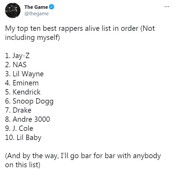 The Game опубликовал свой топ лучших рэперов из живущих ныне. Как это часто бывает, его десятка лучших МС вызвала много споров — впрочем, так устроен практически каждый топ и рейтинг, во многом ради обсуждений их и создают.