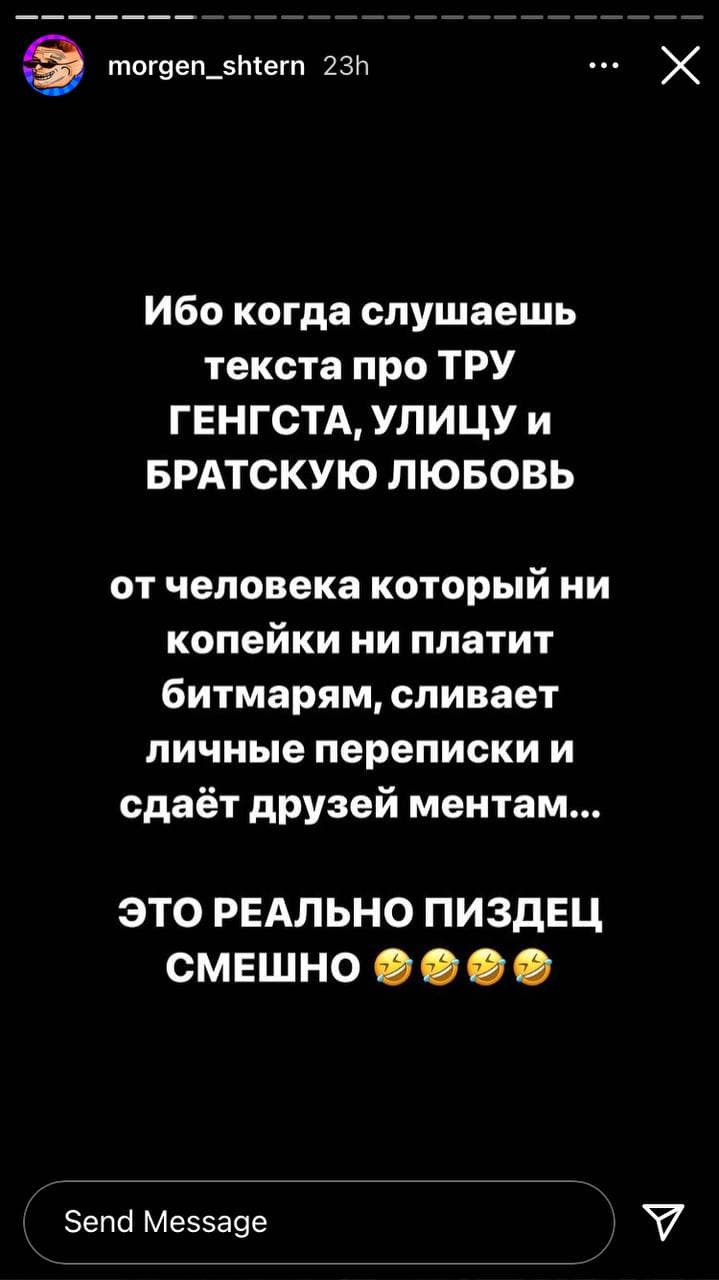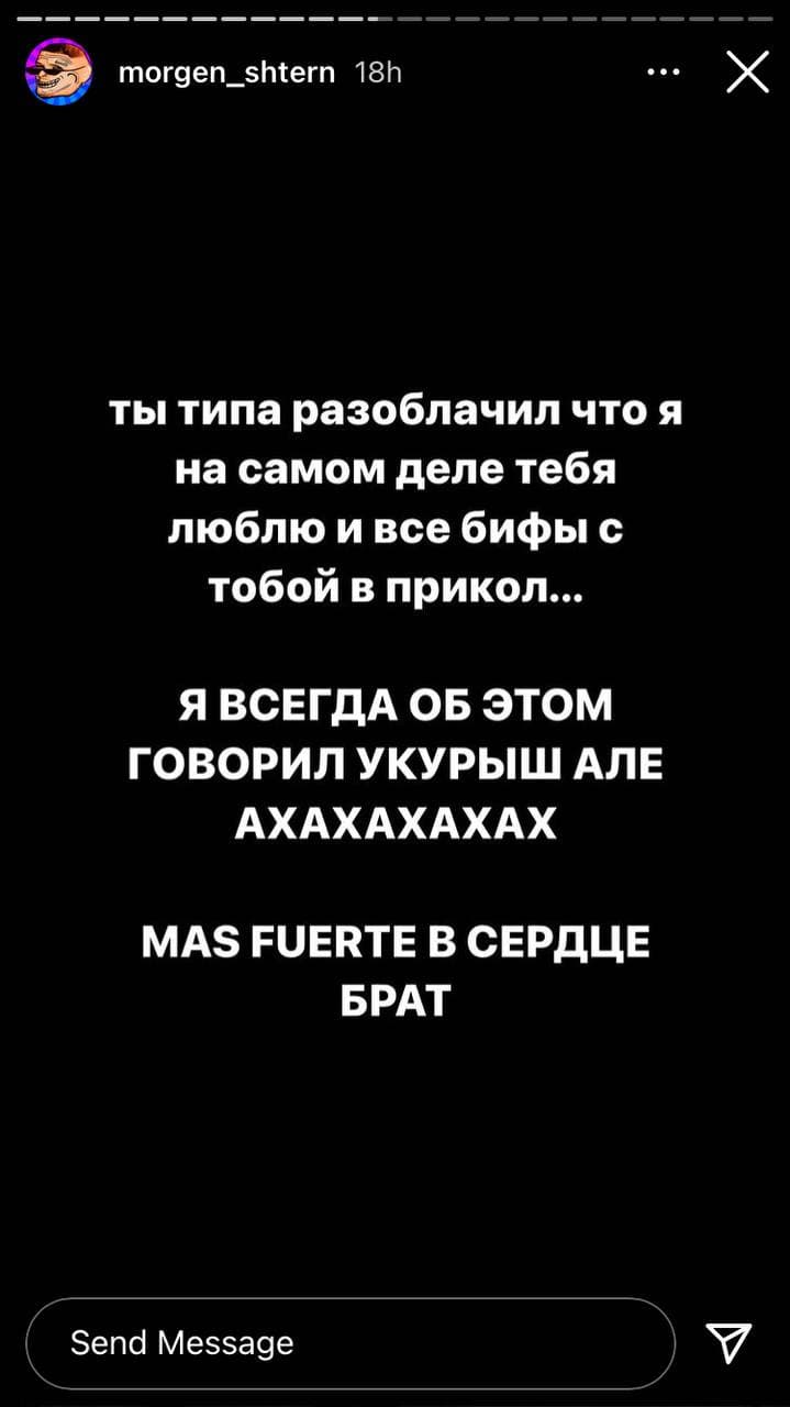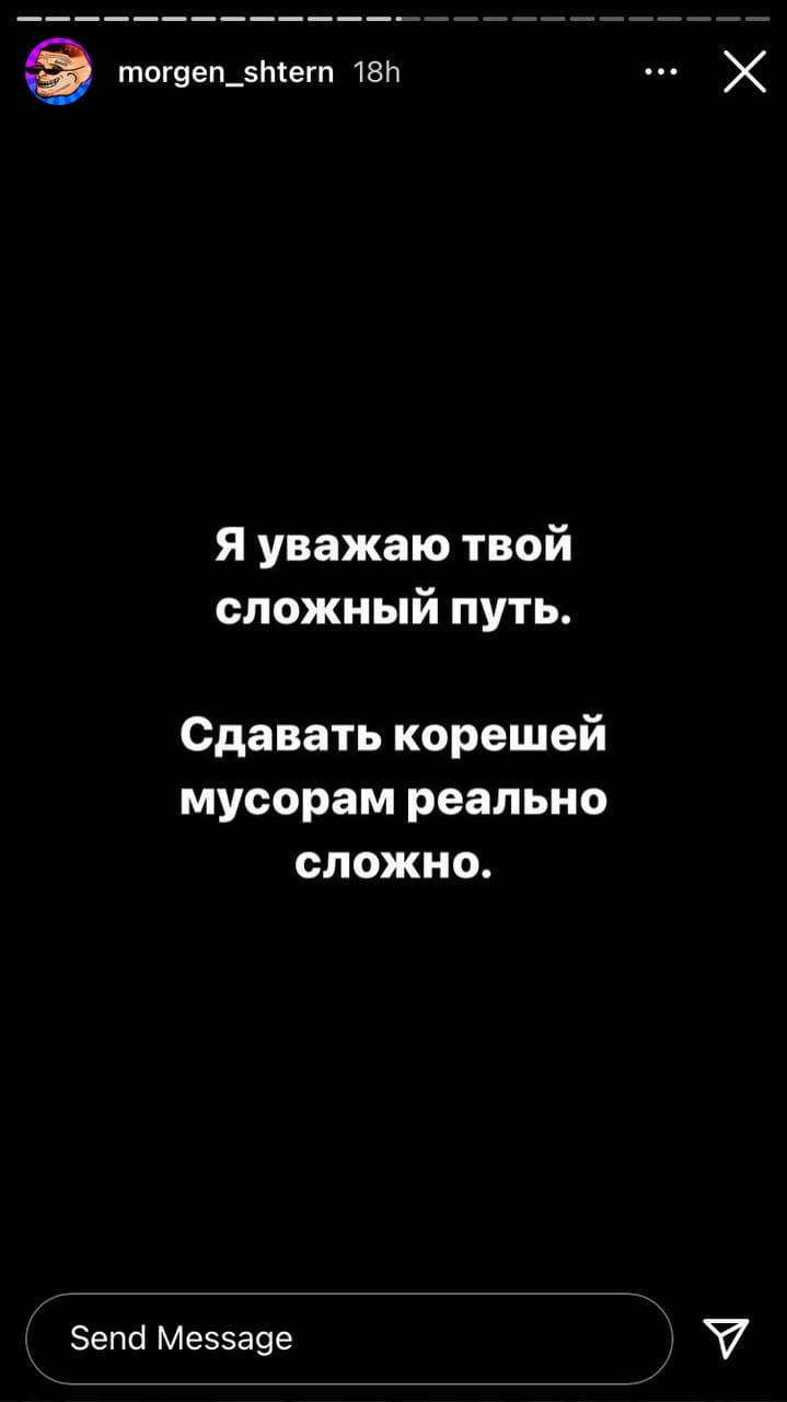 Моргенштерн тоже не промолчал, ответив несколькими сторис: