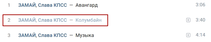 Причина блокировки — название трека. Колумбайн — американская школа, в которой в 1999 году в результате стрельбы погибли 13 человек. В феврале этого года Верховный суд РФ признал «движение Колумбайн» террористическим.