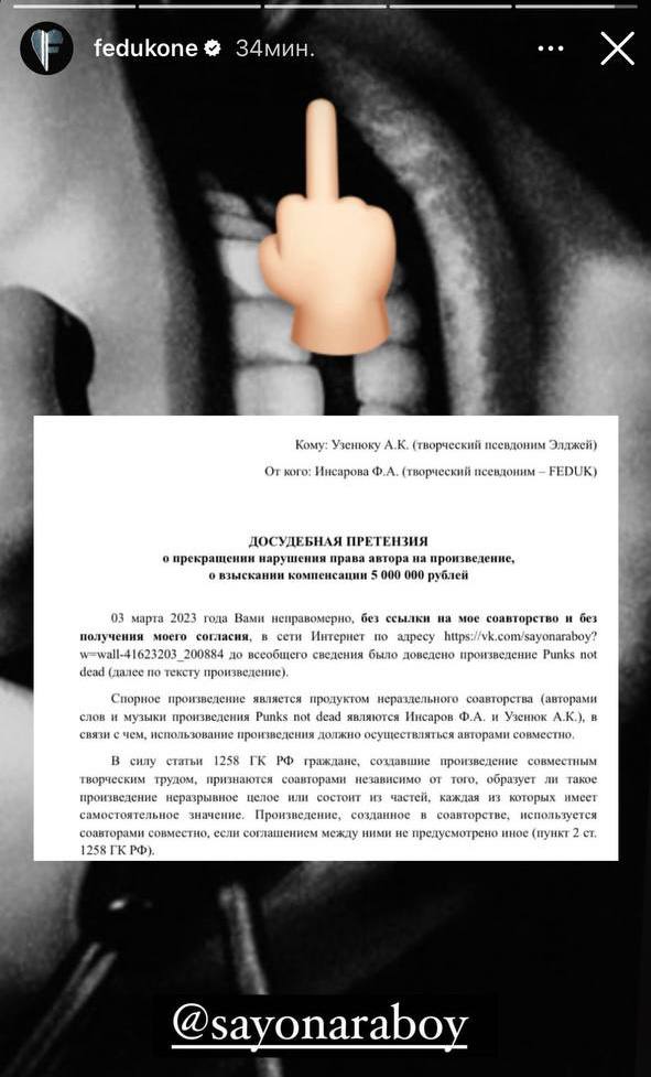 Все дело в треке "Punks Not Dead", который вышел на альбоме Элджея и который создан при участии Федука, но без указания его имени.