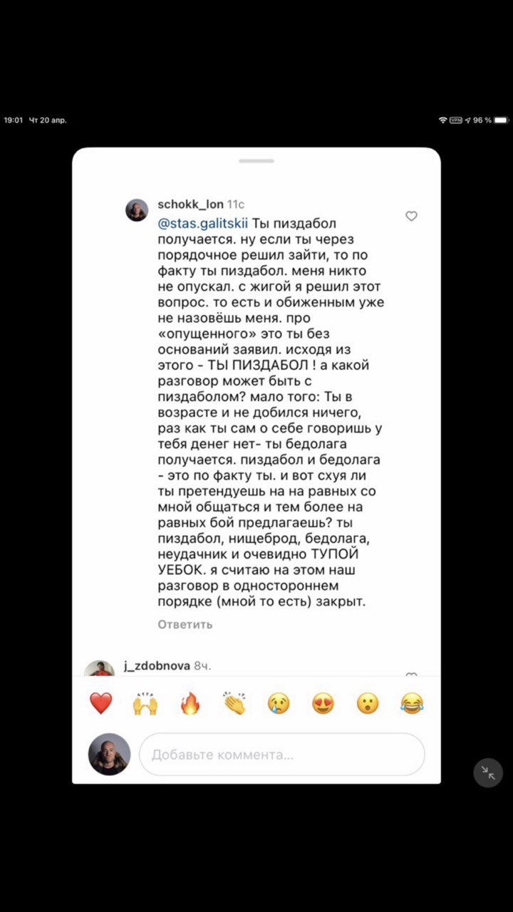Дмитрий Бамберг, также известный как Schokk, оперативно отреагировал на вызов руководителя RAP.RU Стаса Галицкого в Инстаграм*.