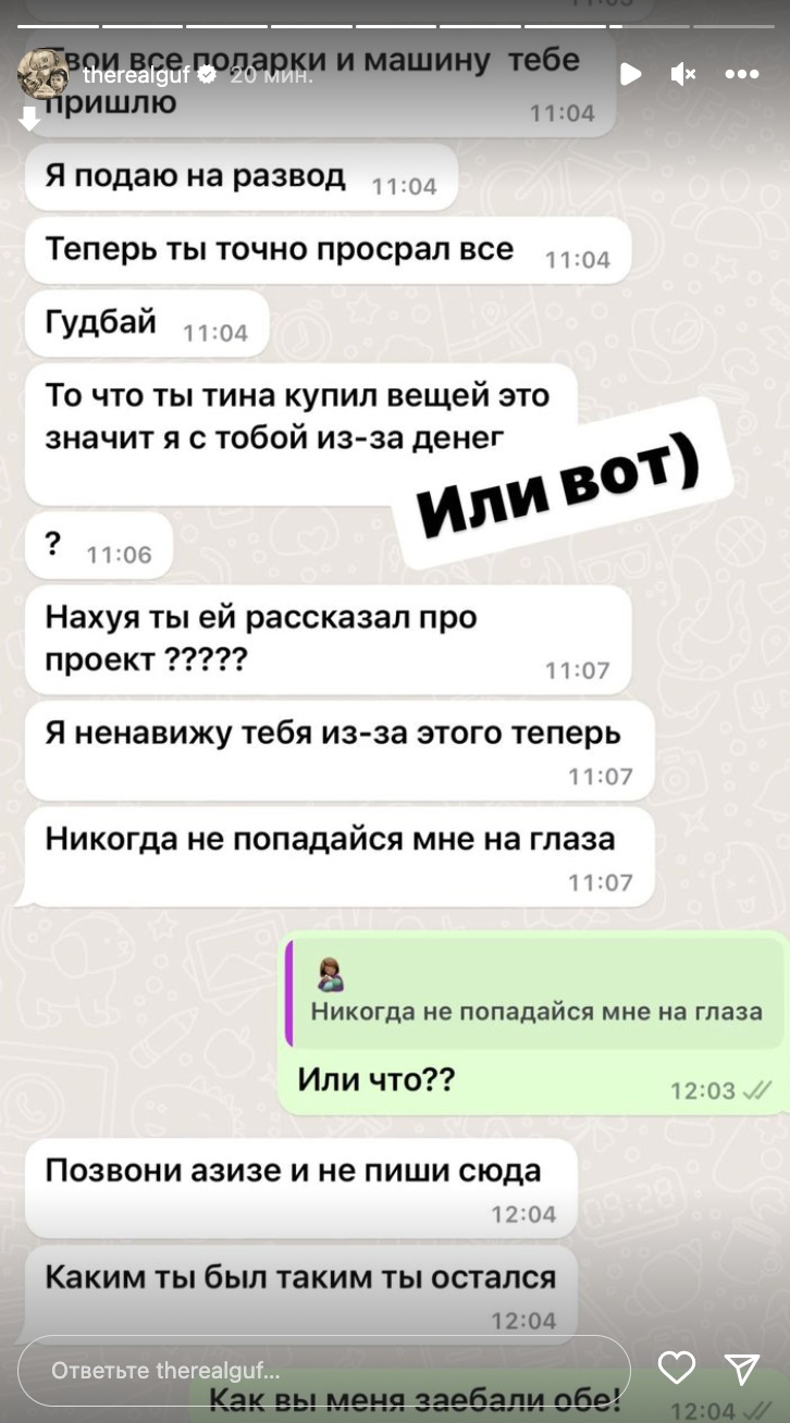 Жена Guf'a снова грозит подать на развод: "Теперь ты точно про**ал всё"