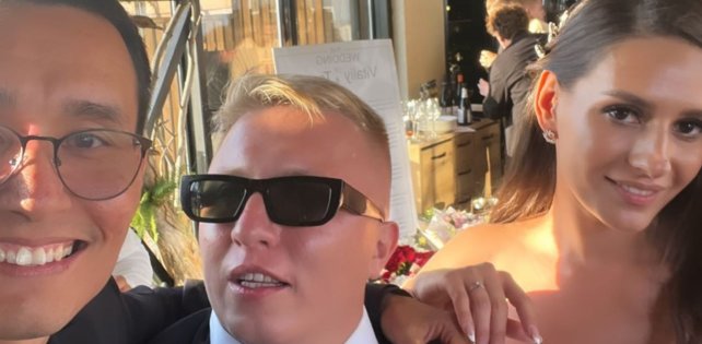 Поздравим Витю. Кстати говоря, даже на свадьбе он не изменяет своему образу, гоняя в солнцезащитных очках