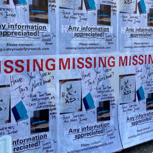 Andre 3000 разыскивает пропавший блокнот в Амстердаме и подогревает слухи о новом рэп-альбоме.