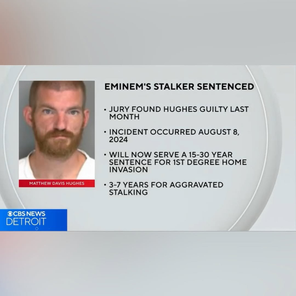 Личное пространство Эминема теперь в относительной безопасности — за решетку отправится его сталкер Мэтью Дэвид Хьюз, которые многие годы навязчиво присутствовал в жизни рэпера из Детройта и даже неоднократно нарушал личное пространство музыканта.