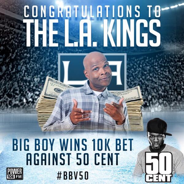 Ведущий радиостанции «Power 106» по имени Биг Бой, тот самый хостер шоу «Big Boy's Neighborhood», празднует нынче не только победу хоккейного клуба «Los Angeles Kings» кубка «Stanley,» но и свою собственную. Как оказалось, незадолго до решающего матча между «Los Angeles Kings» и «New York Rangers», Биг Бой и 50 Cent поспорили и заключили пари, в котором проигравший будет должен победителю $10000. А пока Биг Бой и его коллеги пестрят в «Твиттере» о проигрыше 50 Cent, последний вовсе предпочитает молчать по этому поводу, ведь для своих слушателей он приготовил более важную информацию. 13 ноября — дата начала продаж шестого студийного альбома 50 Cent «Street King Immortal», релиз которого состоится на лейблах «Shady», «Aftermath» и «Interscope». Что касаемо G-Unit, на прошедших выходных после коллективного выступления на игре «New York Mets» Кёртис объявил о новом материале группы, представить который он намеревается на этой неделе. И для тех, кто не знал, очередной альбом G-Unit уже находится на стадии записи.