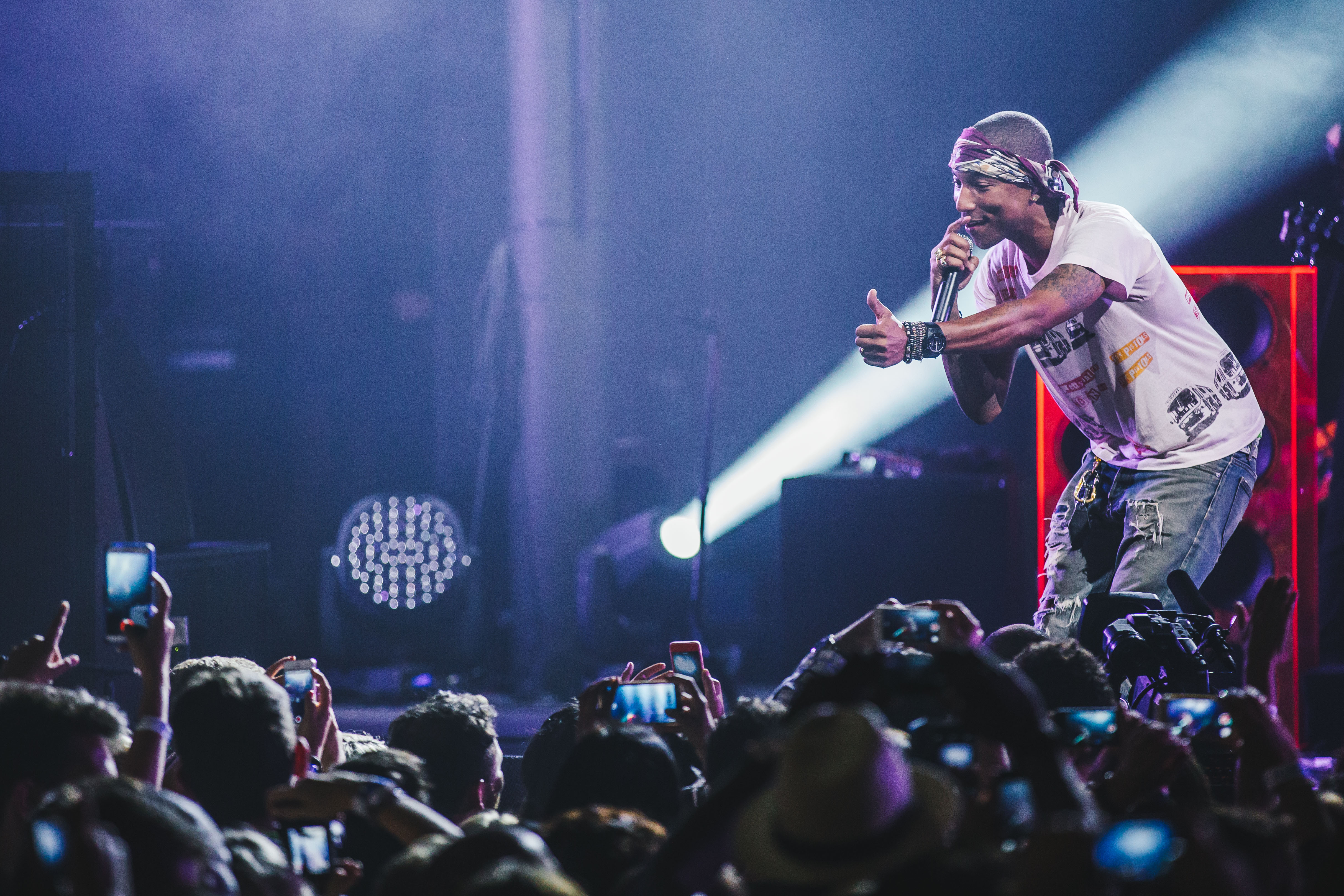 Минувшей ночью в Лондоне состоялось выступление Фаррелла Уильямса, которое стало частью уникального 30-дневного фестиваля iTunes Festival, проходящего в течение всего сентября. Артист исполнил на сцене легендарного Roundhouse самые яркие песни с последнего альбома «G I R L». Публика с невероятной энергией реагировала на такие хиты, как «Happy», «Get Lucky» и «Blurred Lines». Также Фаррелл позволил зрителям прямой трансляции в iTunes вспомнить песни «Like I Love You», «Holla Back Girl» и «Drop It Like It’s Hot». Для поклонников самого раннего своего творчества музыкант даже воссоединился с бывшим участником группы N*E*R*D, исполнив ещё три песни вместе с Шелдоном Хейли и намекнув на новый материал в ближайшем будущем. На сцене Уильямс выступал, облачившись в обязательные для себя атрибуты — шляпу и ботинки собственного бренда Billionaire Boys Club.