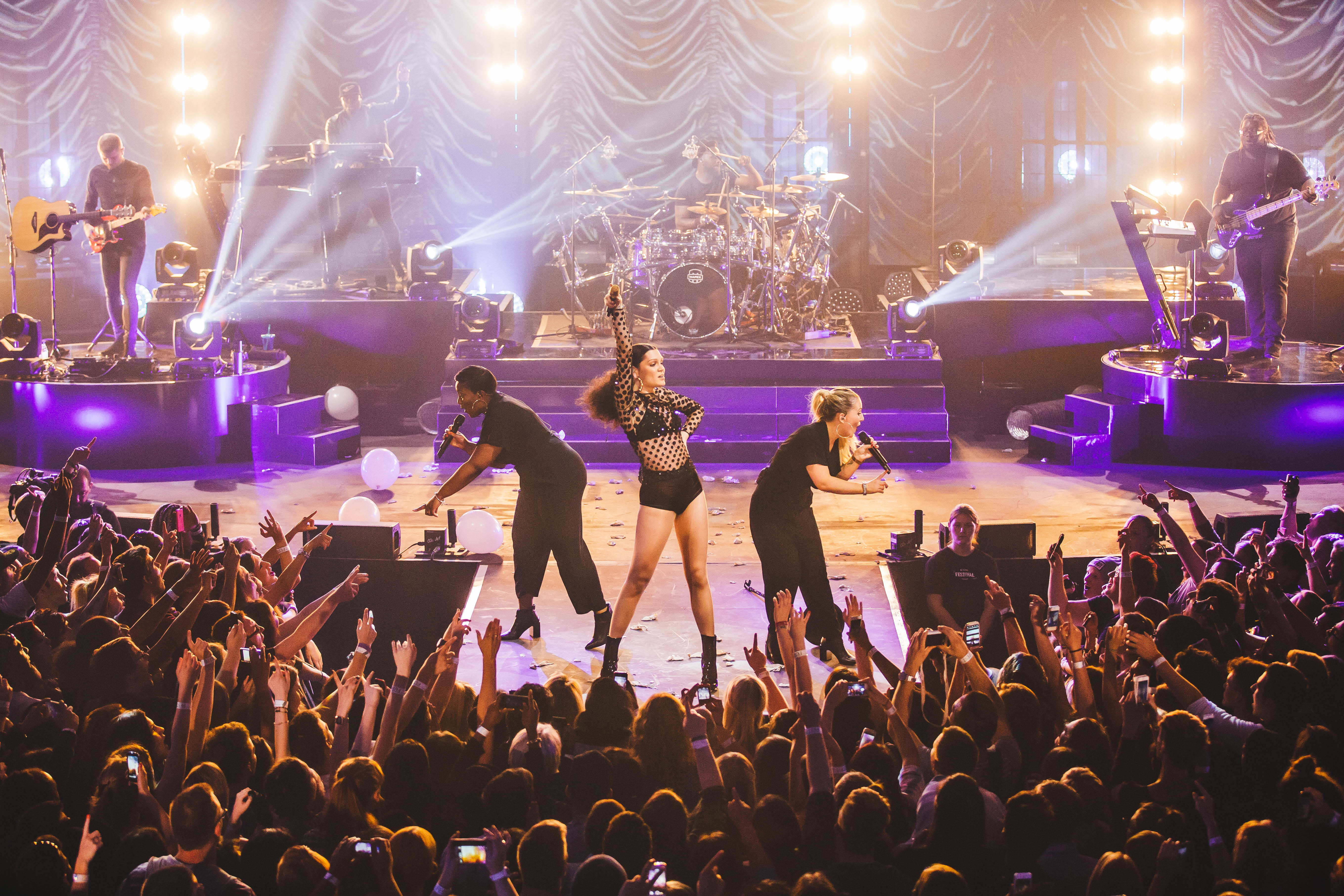 Минувшей ночью на концертной площадке Roundhouse в Лондоне состоялось выступление британской певицы Джесси Джей в рамках фестиваля iTunes Festival. Поп-вокалистка вышла на сцену в эксцентричном наряде на высоких каблуках и, несмотря на это, выполняла сложнейшие танцевальные движения, удивляя публику своей пластикой. Многие отметили еще один сюрприз, который подготовила Джесси: во время исполнения одной из песен с потолка бывшего паровозного депо Roundhouse на зрителей были выпущены сотни белых воздушных шаров, которые заполнили весь зал. Появление на сцене популярного рэпера Тайни Темпа во время исполнения новой песни «Sweet Talker», которая станет лид-синглом с одноимённого альбома (релиз 13 октября), привело публику в неописуемый восторг.