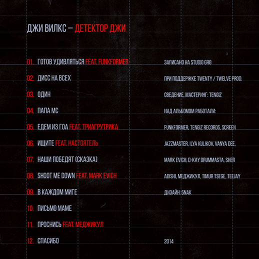 1 ноября выходит 10-й альбом ни много ни мало легендарной творческой единицы российского хип-хопа; название пластинки — «Детектор Джи». В треклисте присутствуют как уже довольно известные коллективы, так ещё и начинающие артисты (об одном мы уже писали).