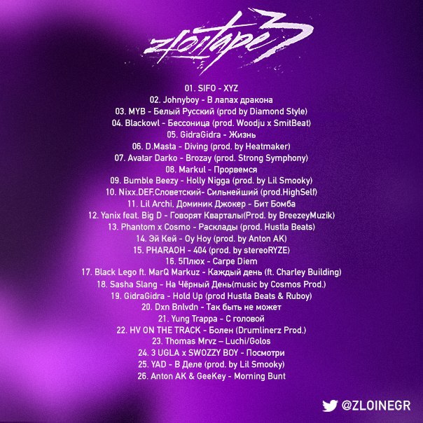 Треклист и обложки «ZLOI TAPE 3»: участвуют Johnyboy, D.Masta, Yanix и 5 Плюх