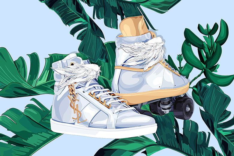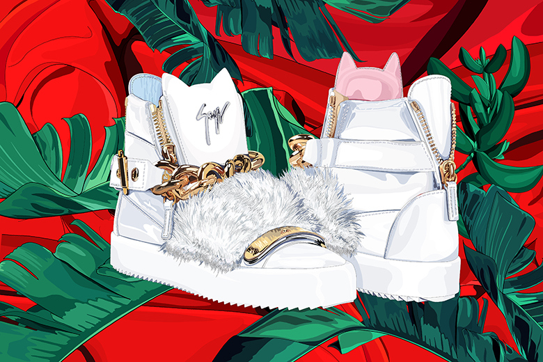 Если вы уже утомились от бесконечных пресс-релизов, в которых каждую новую пару называют «кроссовками века», то просто выкиньте все это из головы и посмотрите на креативную подборку от польского дизайнера Ольки Осадзинской. На картинках, которые не стыдно распечатать и повесить у себя в комнате – нарисованы сникеры-мечты, которые в свою коллекцию хотел бы заполучить каждый, кто хоть немного интересуется уличной модой. New Balance х Lego, высокие Nike Dunk с принтами вдохновленными «Парком Юрского Периода», пара кроссовок Saint Laurent с отсылкой к культовому нью-йоркскому клубу Studio 54, дует Balenciaga и Jeff Koons и даже тапки Giuseppe Zanottis, которые посвящены… коту Карла Лагерфельда.