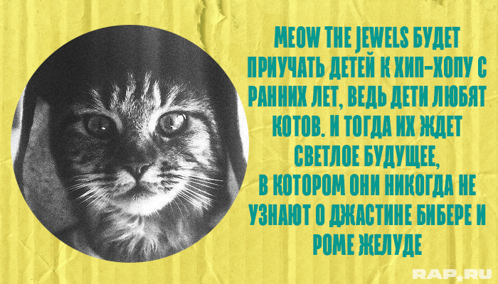 Вчера вечером El-P выложил в Instagram небольшое видео, в котором музыкальная колонка смиренно качает новый бит от Run The Jewels. Судя по всему, это был намек на третий альбом группы, который El-P и Killer Mike обещали выпустить в этом году. И это, несомненно, прекрасные новости. Но куда больше трепета у нас вызывает другой вопрос — что там c альбомом кошачьих ремиксов «Meow the Jewels»? Кошачьих ремиксов, Карл!