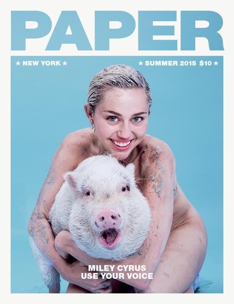 Голая Майли Сайрус в обнимку со свиньей на обложке Paper