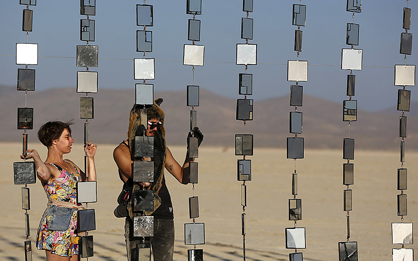 Burning Man – это ежегодный то ли музыкальный фестиваль, то ли дикий арт-сквот, то ли сон душевнобольного, который в течение 8 дней проходит прямо в невадской пустыне. В течение недели эта богом забытая земля обрастает огромными статуями и арт-инсталяциями, вокруг ездят чудаковатые средства передвижения, на танцполах долбят диджеи и музыканты, а посетители выглядят как персонажи из «Безумного Макса». Только они здесь добрые и улыбчивые. В этом году темой фестиваля стал «Карнавал зеркал» и вот как это выглядело.