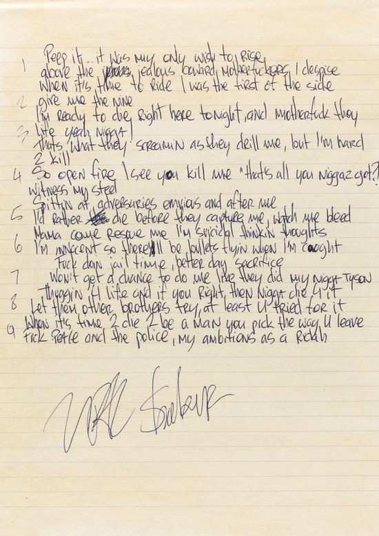 Памяти Тупака: рукописи текстов рэп-легенды продают на аукционе, а также письмо-трибьют от Кендрика