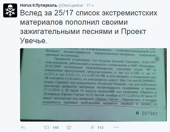 Некий Евгений Сергеевич Огурцов, работающий в должности глазировщика в ООО «Керамика», разместил в социальной сети «ВКонтакте» экстремистские материалы, в которых содержатся признаки возбуждения ненависти (вражды и розни).